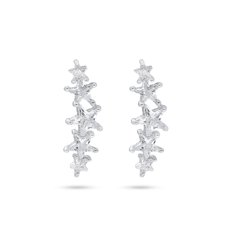 עגילים מהממים בעיצוב ייחודי של חמישה כוכבים קטנים משובצים בזירקונים נוצצים, המשתלבים זה תחת זה במבנה מדורג שמחמיא לצורת האוזן. העיצוב מעניק מראה שמיימי, שובבי אך מלא אלגנטיות - מושלם לכל סגנון ולכל גיל.