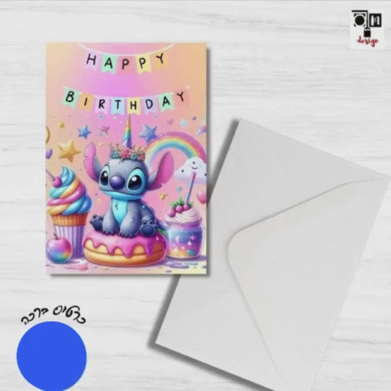 מחפשים כרטיס ברכה מקורי, צבעוני ומרגש באמת? כרטיס הברכה המעוצב של סטיץ' מביא איתו קסם, חיוך גדול ואווירה חגיגית לכל יום הולדת. הקובץ הדיגיטלי מאפשר הדפסה מהירה, איכותית ונוחה בבית או בחנות - פתרון מושלם למתנות של הרגע האחרון, לאירועי ילדים או לכל מי שאוהב עיצוב חמוד ומיוחד.