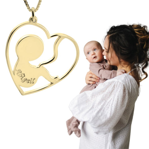 שרשרת לב עם שם תינוק - שרשרת לאמא חדשה.