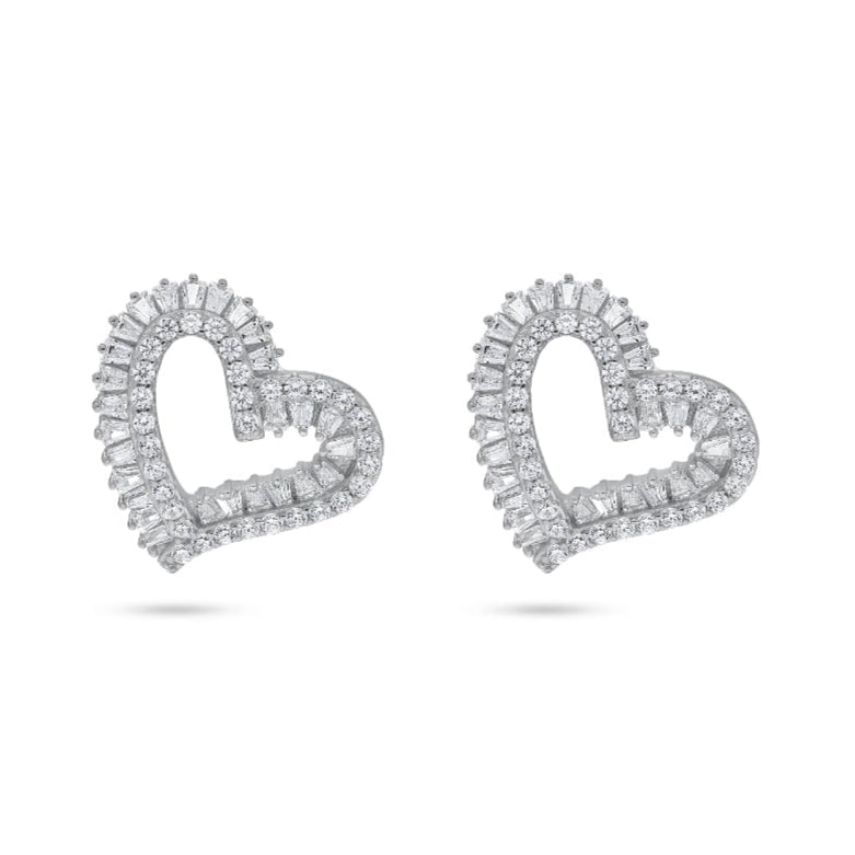 עגילי לב מכסף 925 משובצים זירקונים בעיצוב פתוח מודרני